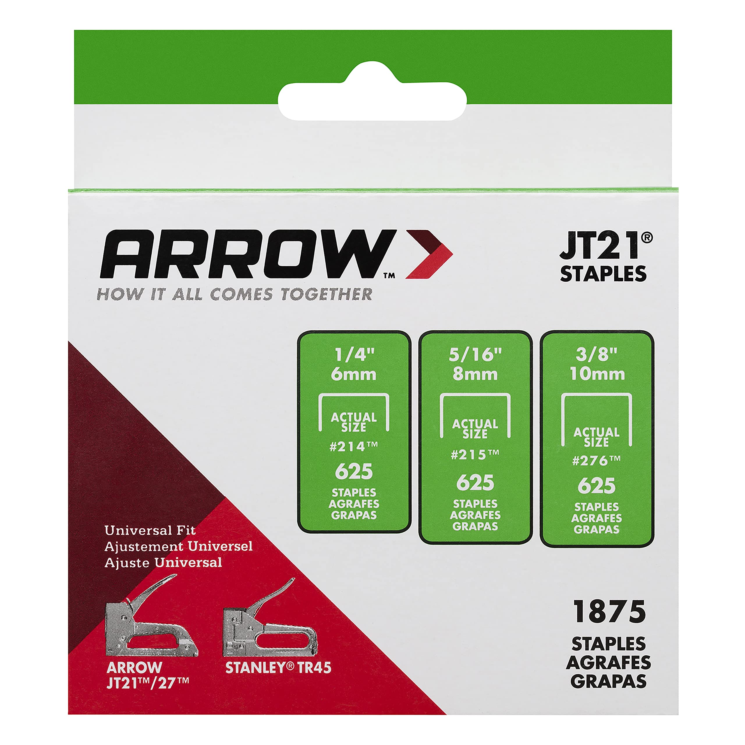 Amazon Com Arrow 21mp1 Jt21 Thin Wire Staples Multipack For Staple Guns And Staplers Use For Upholstery Crafts General Repairs Includes 1 4 Inch 5 16 Inch And 3 8 Inch Sizes 1875 Pack Packaging May Vary Office Products