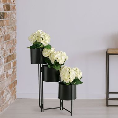 Plant Stand Flower Pot Holder 3 Containers Living Room Decoration Accessory Modern Plant Container Black Iron Round Lxwxh 51x18x64 Cm Meine Lampe